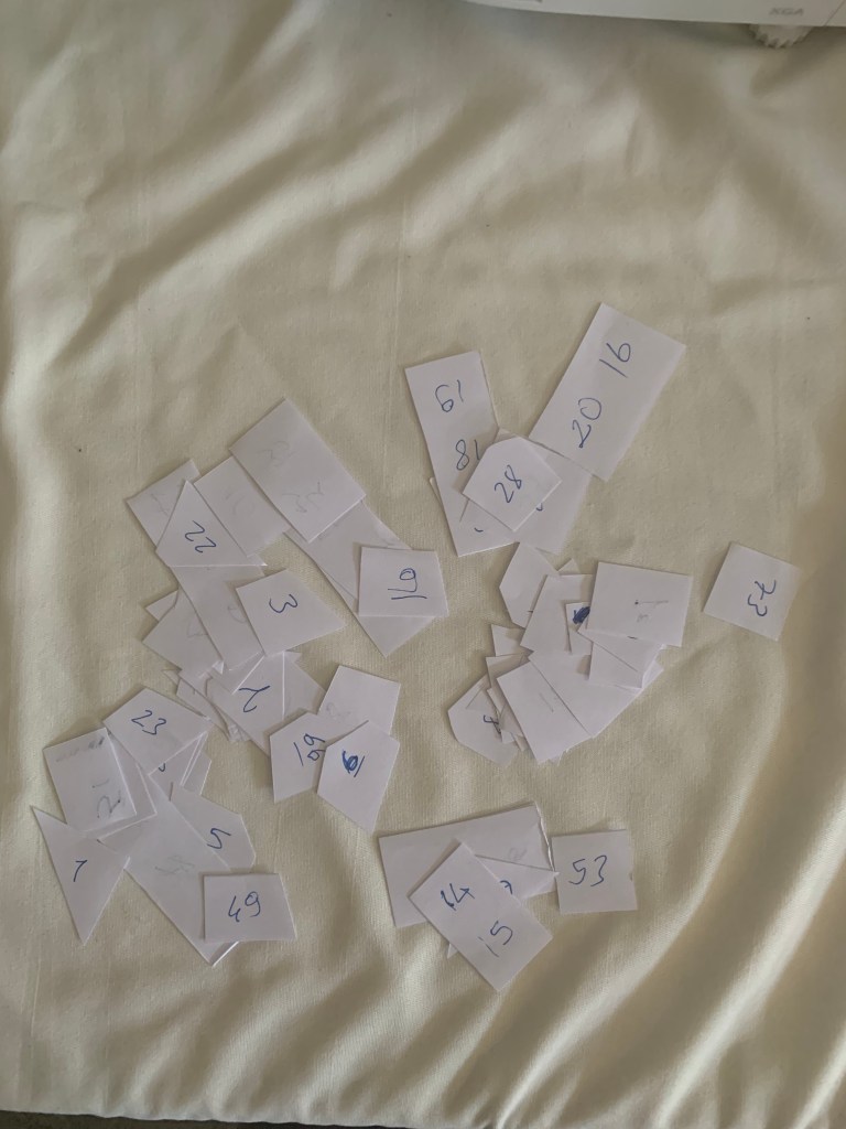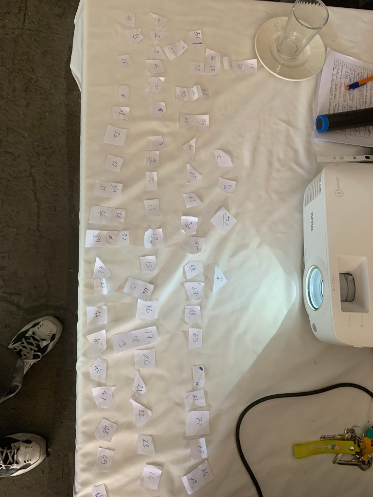 Kağıt parçalarını rastgele eğitime katılanlara dağıttım.
