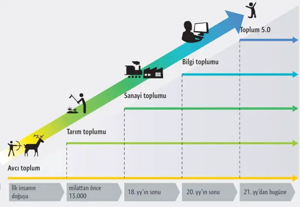 Society 5.0 is a concept that emerged with the evolution of the industrial revolutions, aiming to combine traditional societal models with digital technology and artificial intelligence and to establish a balance between humans, technology, and nature. This approach aims for technology to provide not only economic but also social and environmental benefits. Society 5.0 represents a society model where people can use technology effectively to improve their lives, solve social problems, and live in harmony with nature.