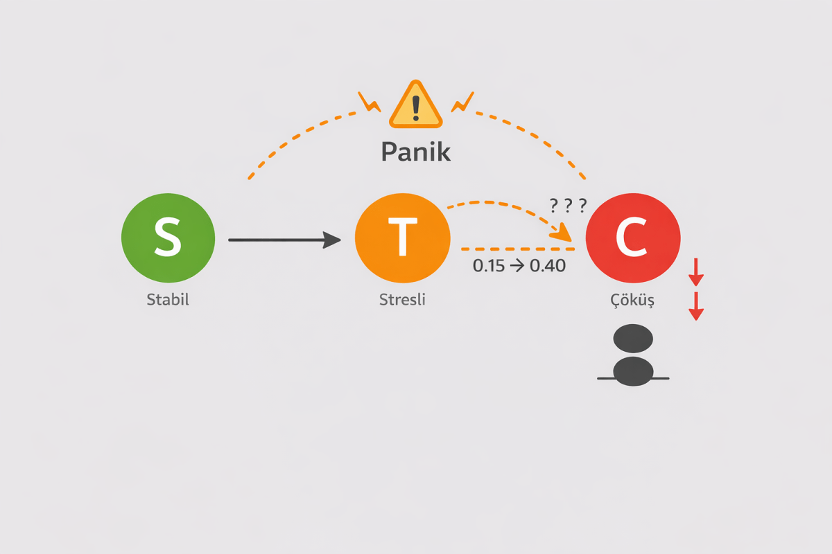 Asıl soru şu: Eğer zaten stresliysek, panik altında yarın çöküş ihtimali ne kadar sıçrar? Bu soruya cevap vermek için statik değil, dinamik bir modele ihtiyaç var.