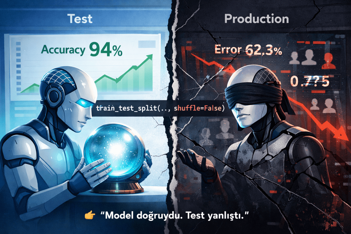 Ve çözüm karmaşık değildir—sadece doğru soruları sormak gerekir: “Veri nasıl bölündü?”, “Zaman sırası korunuyor mu?”, “Test seti gerçekten bağımsız mı?” Bu sorular sorulmazsa unutulur, ama sesli dile getirilirse ekip fark eder.