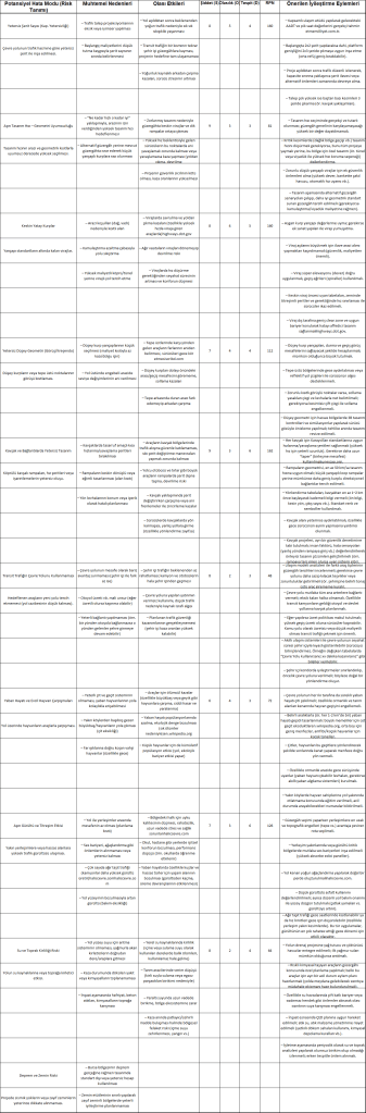 Yöntemoloji Trafik problemleri, endüstriyel süreçlerde kullanılan Greenfield FMEA (Hata Türü ve Etki Analizi) yaklaşımı ile ele alınmış, her hata türü için Kuyruk Teorisi kapsamında bilimsel çözüm yolları sunulmuştur. Kuyruk teorisinde sistemin giriş oranı (λ), hizmet oranı (μ), ortalama kuyruk uzunluğu (Lq), bekleme süresi (Wq) gibi parametreler hesaplanarak darboğazlar ve kritik eşikler belirlenmiştir.