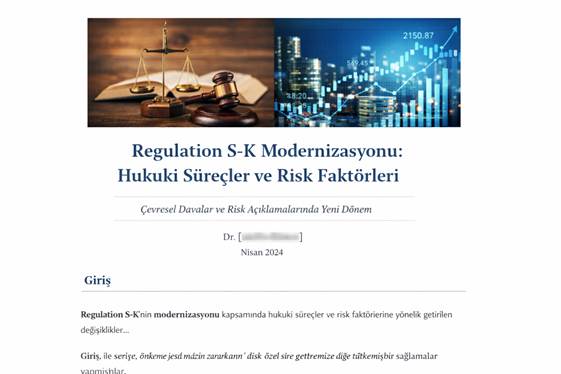 Bir sonraki yazıda ise modernizasyonun diğer önemli başlıklarına geçeceğiz: Madde 103 (hukuki süreçler) ve Madde 105 (risk faktörleri). Özellikle çevresel davalar, eşik değişiklikleri ve risk faktörü özetleri gibi konuların ne anlama geldiğini birlikte inceleyeceğiz.